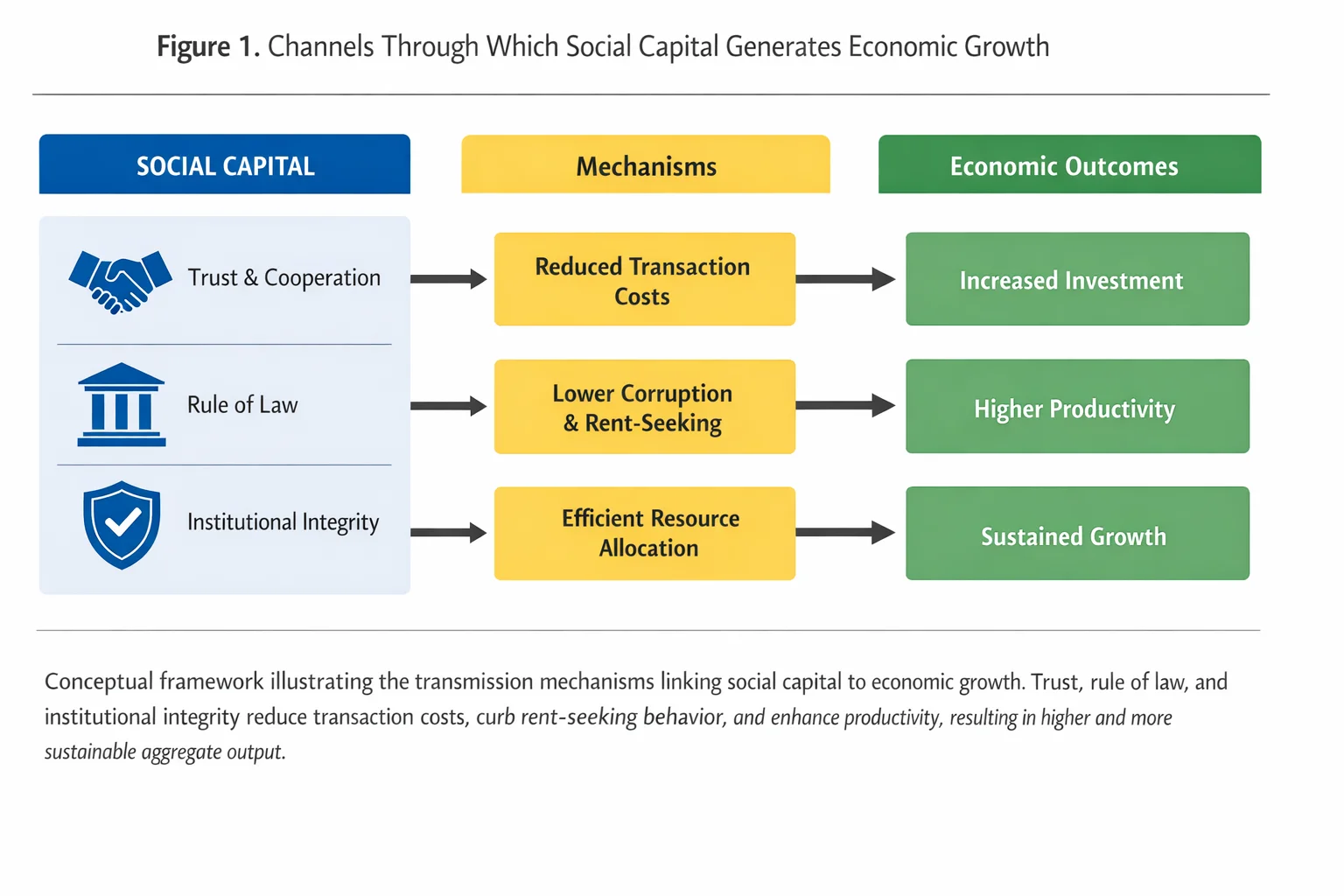 Figure 1. Channels Through Which Social Capital Generates Economic Growth (Original, belongs to author).